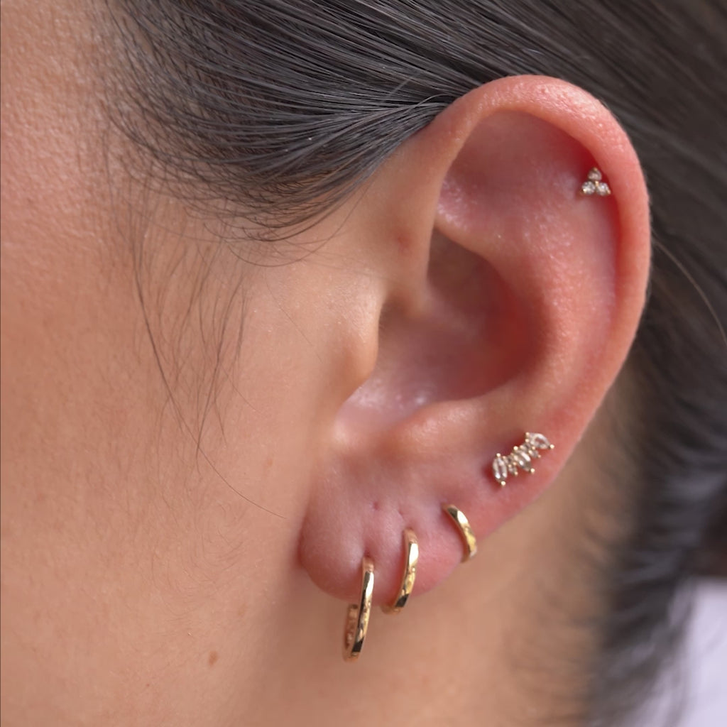 El Single Huggie (10mm) es el básico perfecto para cualquier ear stack y se usa mucho en el lóbulo, lóbulo superior y para un look más relajado en el hélix medio y hélix.