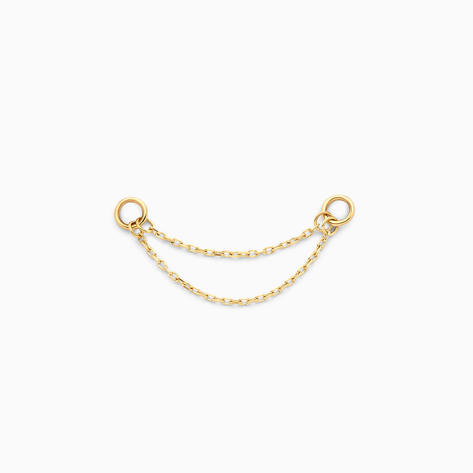 Améliorez votre ear stack avec le Double Chain Connector. Ce connecteur individuel relie vos huggies et piercings à l’aide de deux fines chaînes pour créer un ear stack élégant.